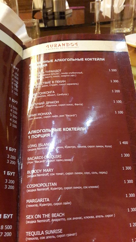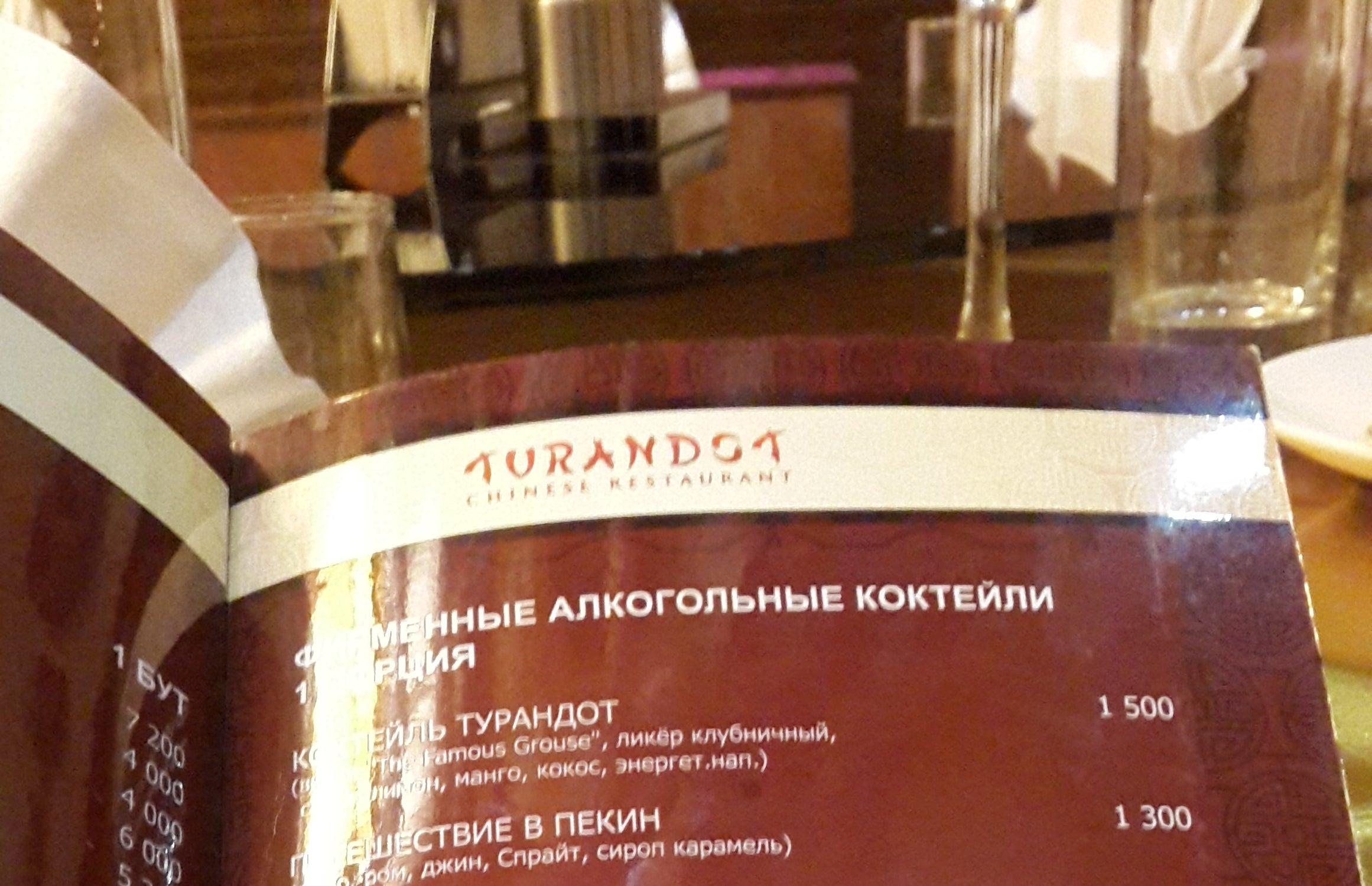Дорого ли стоят основные позиции меню ресторана Turandot?