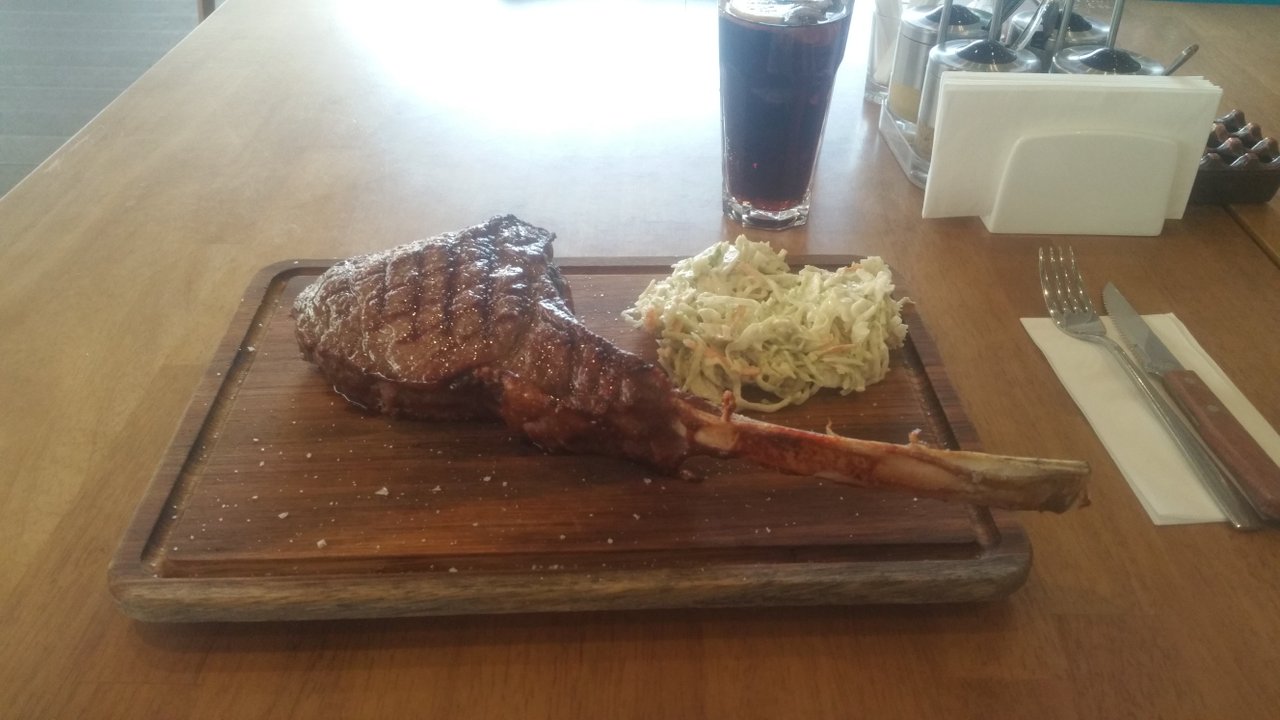 Пришли в ресторан с женой поужинать. Т.к. место разрекламированное и не дешевое, ожидали поесть вкусных стейков. Обстановка, атмосфера понравилась, играет приятная музыка. Что касается меню! Я всегда заказываю стейки прожарки medium well, но официант порекомендовал взять просто medium. Ладно взяли с женой medium Тибон и Нью-ойрк. По факту стеки оказались прожарки medium RARE! Гарнир шпинат с грибами тоже на любителя. Во общем кухня так себе! Самое вкусное, что там было, это хлеб и гарнир «запеченный картофель».… – показать