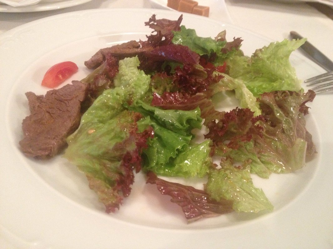 Первое, что смутило — отсутствие посетителей (ещё пару лет назад забронировать столик по телефону не представлялось возможным). Стол, кото рый нам приготовили, находился в конце пустого зала с праздно фланирующими двумя официантами.