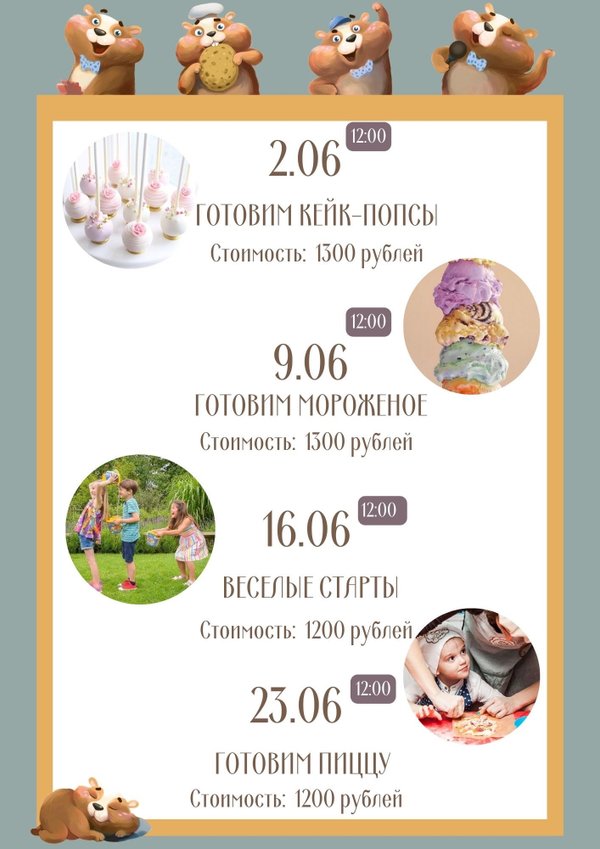 Ура! Долгожданное расписание мастер-классов на ИЮНЬ Будем готовить кейк-попсы, делать натуральное мороженое, соревноваться на веселых стартах и готовить настоящую итальянскую пиццу! Как бесплатно принять участие в мастер-классе? Просто прояви активность и забери приз в нашем конкурсе! 10 июня подведем итоги и выберем самого активного пользователя с помощью нашей таблицы в шапке профиля ️