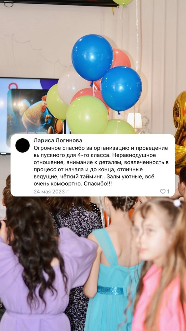 Организация выпускного без лишнего стресса и хлопот? Легко! Почему стоит обратиться именно к нам? Наша команда более 10-ти лет занимается организацией праздников и знает секрет идеального выпускного вечера! Доверьтесь профессионалам и не мучайте себя лишними вопросами Также, у вас есть последняя возможность воспользоваться нашим выгодным предложением — БРОНИРОВАНИЕ ВЫПУСКНОГО СО СКИДКОЙ 10% (только до конца марта) Все подробности обсудим в личных сообщениях или по номеру:. Ждем вас!