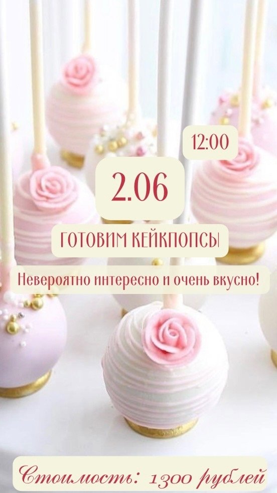 Вкусный и веселый мастер-класс «Готовим кейк-попсы» уже через 2 ДНЯ Увлекательное занятие в кругу семьи и новых друзей – разве можно провести выходной ещё лучше? Осталась парочка свободных мест, успейте записаться