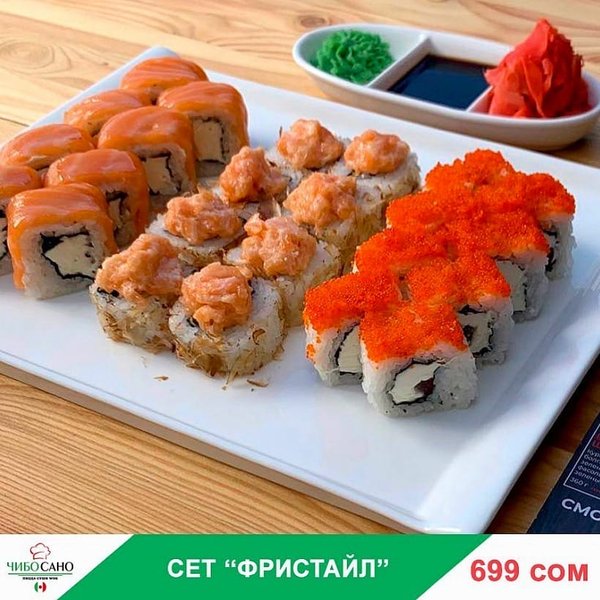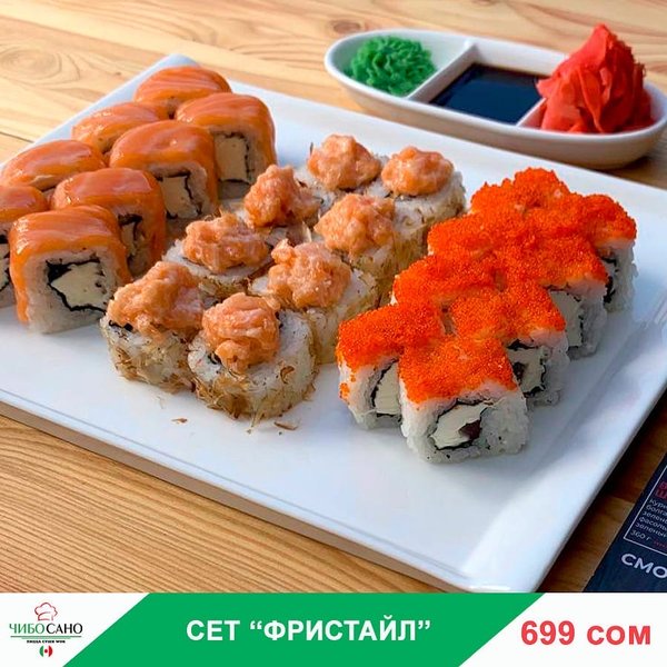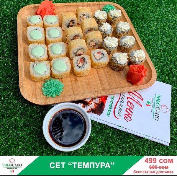Бесплатная доставка по городу ВКУСНО!ВЫГОДНО!БЫСТНО! Сет » Темпура» за 499сом ————— Жареные роллы Сяке Тен Рору 8 штук Цезарь Темпура с семгой 8 штук Олимп 8 штук бесплатная доставка по городу 499 сом —————— Оформить заказ можно любым удобным способом: ️по телефону ️на сайте ️через what’s app (0704909999) ️@cibosano.kg
