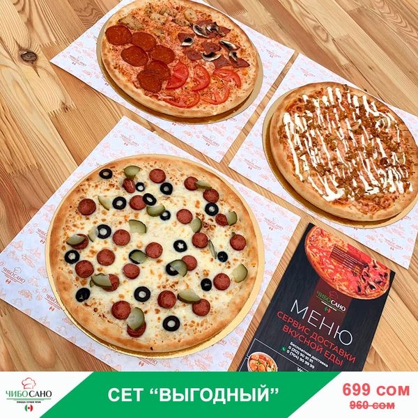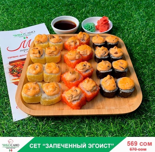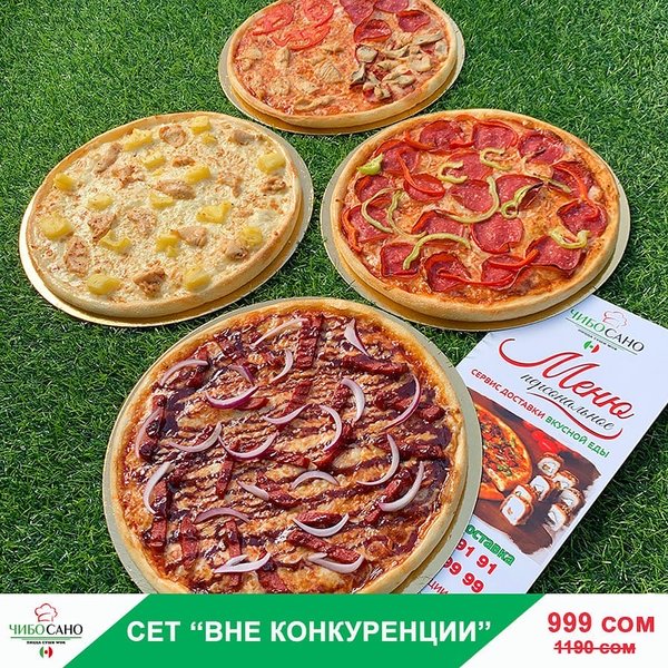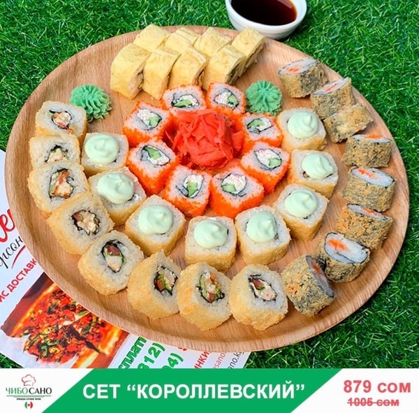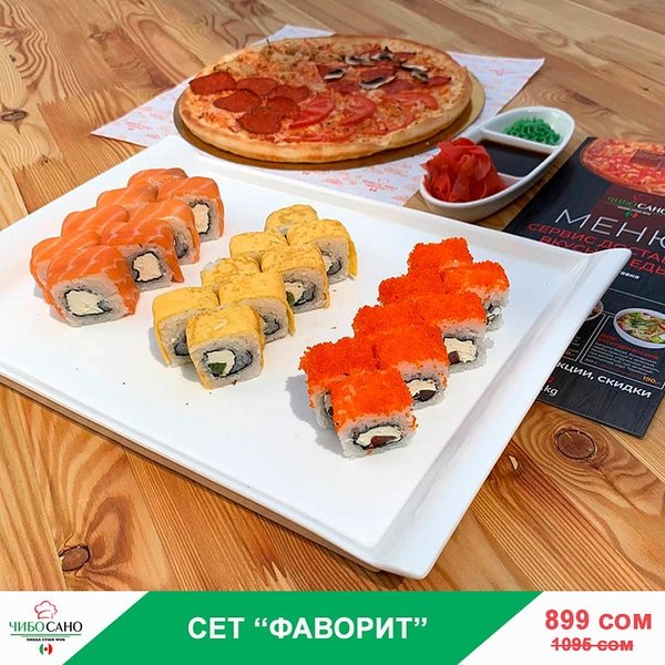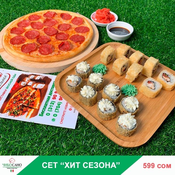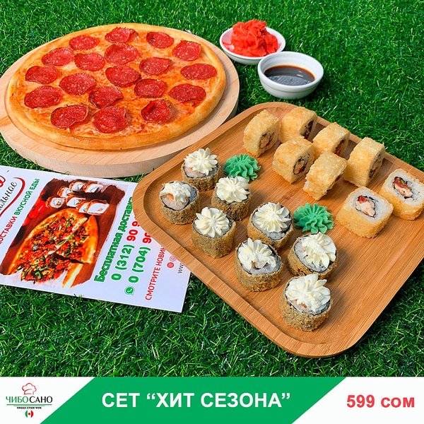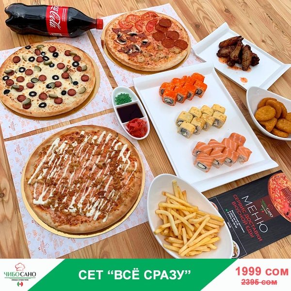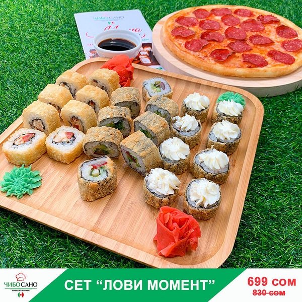 Бесплатная доставка по городу Начни свой день с Чибо Сано! Сет » МегаСет » за 1499сом ————— Пицца Пепперони с перцем 28см Пицца Маргарита 28см Пицца Крутая Цыпочка 28см Филадельфия Лайк 8штук Калифорния 8 штук Жареные роллы Цезарь Темпура 8 штук Мидзуми 8 штук Олимп 8 штук бесплатная доставка по городу 1499 сом —————— Ссылка для заказа онлайн в шапке профиля @cibosano.kg⤴️