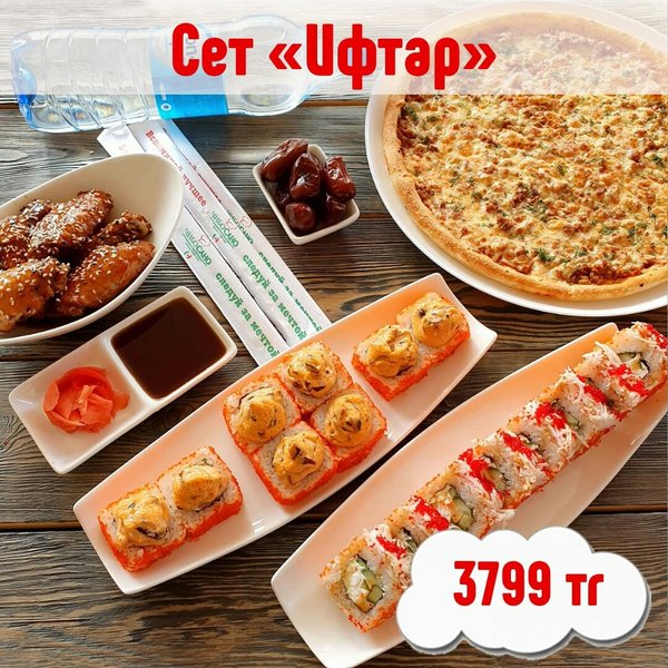 Вкусно, выгодно, быстро! ⠀ ИФТАР . Пицца «Классика с фаршем» Ролл «Калифорния Реверс» Ролл «Дзен Хот» Крылышки Терки (7шт) Финики (7шт) Бон Аква б/г, 1 л в подарок!!! . 3799 тг ⠀ Ссылка для заказа в шапке профиля⤴ @cibosano_kz ⠀ АЛМАТЫ