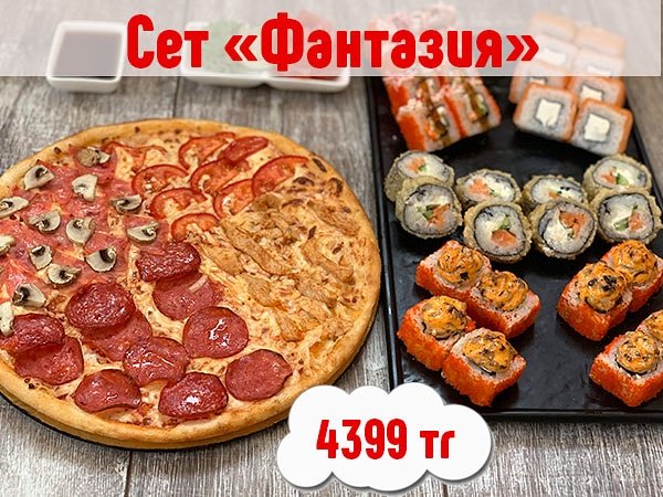 Вкусное предложение от @cibosano_kz СЕТ «ФАНТАЗИЯ» ______ Филадельфия 8 шт Дзен хот 8 шт Горячий лосось 8 шт Калифорния Реверс 8 шт Пицца «Четыре сезона» ______ ⠀ Алматы: 4399 тг ⠀ Ссылка для заказа в шапке профиля⤴ @cibosano_kz АЛМАТЫ ⠀ Работаем без выходных. Доставка бесплатно.