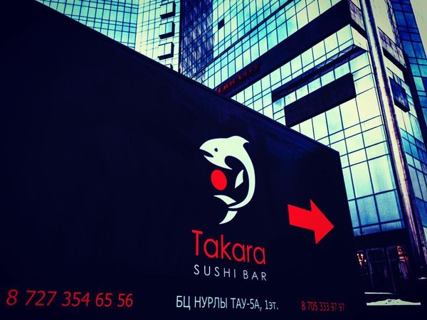 Константин Петров (26.02.2016): Если Вы предпочитаете качественный сервис, советуем посетить атмосферный «Takara Sushi Bar»! Напоминаем про акцию ️ При заказе доставки на сумму 4000 тг, «филадельфия» в подарок! Наш адрес: БЦ Нурлы Тау, блок 5А Наши контакты:; ️ Takara Sushi Bar Almaty