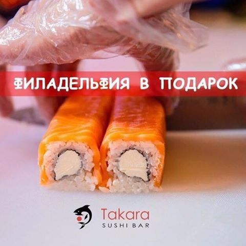 Константин Петров (19.03.2016): Выходные начались, а это значит можно себя порадовать. Подарки от Takara Sushi продолжаются, закажи доставку или самовывоз на сумму 4000 тенге и получи ролл филадельфия в подарок, в нашей филадельфии 10 кусочков. Бесплатная Экспресс доставка ️ Суши бар находится по адресу БЦ Нурлы Тау Блок 5-А Takara Sushi Bar Almaty