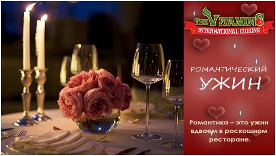 О том, что такое романтика можно спорить бесконечно. Романтика – это последние лучи заходящего солнца, переливающиеся в бокале с дорогим шампанским. Романтика – это вид с высоты птичьего полета на вечерние огни большого города. Романтика – это чуть приглушенный свет и легкая приятная музыка. Романтика – это ужин вдвоем в роскошном ресторане. Все это – романтический ужин в ресторане THE VITAMINS. Ресторан THE VITAMINS это изысканный ресторан международной кухни для истинных ценителей кулинарного искусства. Вина и оригинальные блюда в любое время… — Читать дальше