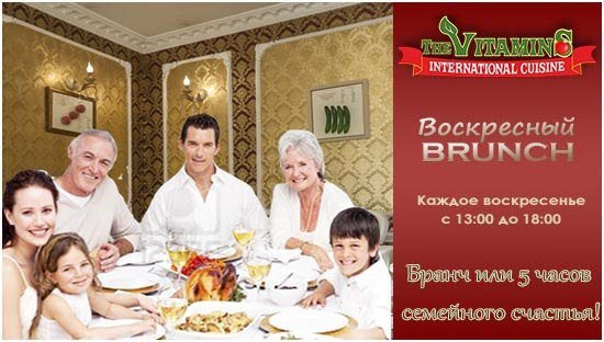 Фуршетный стол, живая музыка, атмосфера ресторана. По воскресеньям с 13-00-18-00 ч.ч., иногда с вином. специальная программа для детей (клоуны, семейные обеды) Это хорошая возможность поближе познакомиться с коллегами или партнерами в свободной, дружеской обстановке. Семейный обед и семейный праздник. приглашение друзей с семьями. Бранч или 5 часов семейного счастья. Бранч – воскресный семейный обед, встречи с друзьями или деловыми партнерами. За бранчем можно отметить день рождения, можно пригласить любимого человека, в конце концов бранч –… — Читать дальше