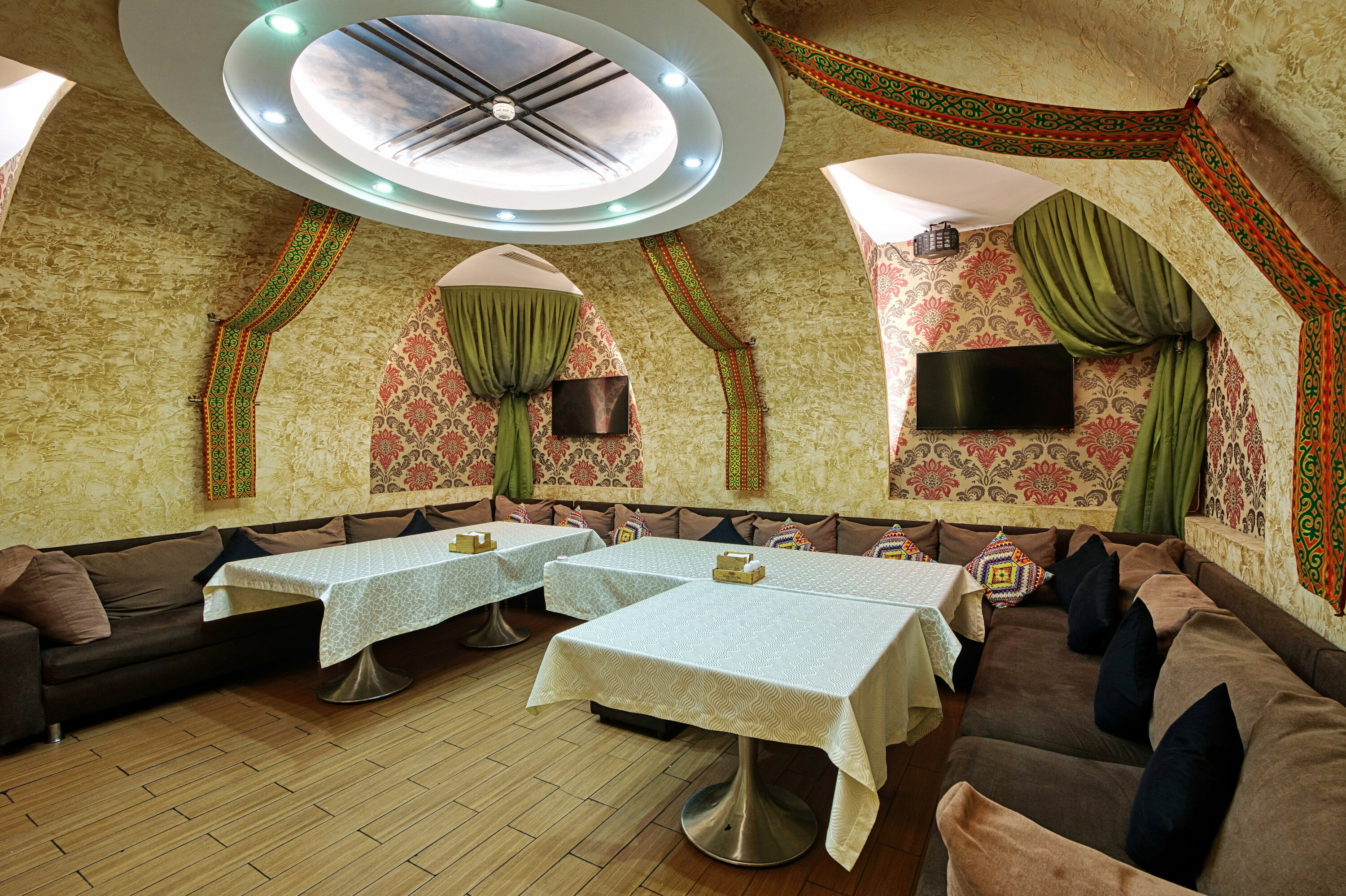 В зале не очень много столиков немного, но именно эта камерность и создает атмосферу уюта, распологают к приятному отдыху и, конечно живому пению. заведение могу рекомендовать для посещения. Готовят вкусно и порции очень большие, цены приемлемые. Обязательно приду еще, есть одно но, кабинки надо бронировать за два, а то и за три ддня ранее.
