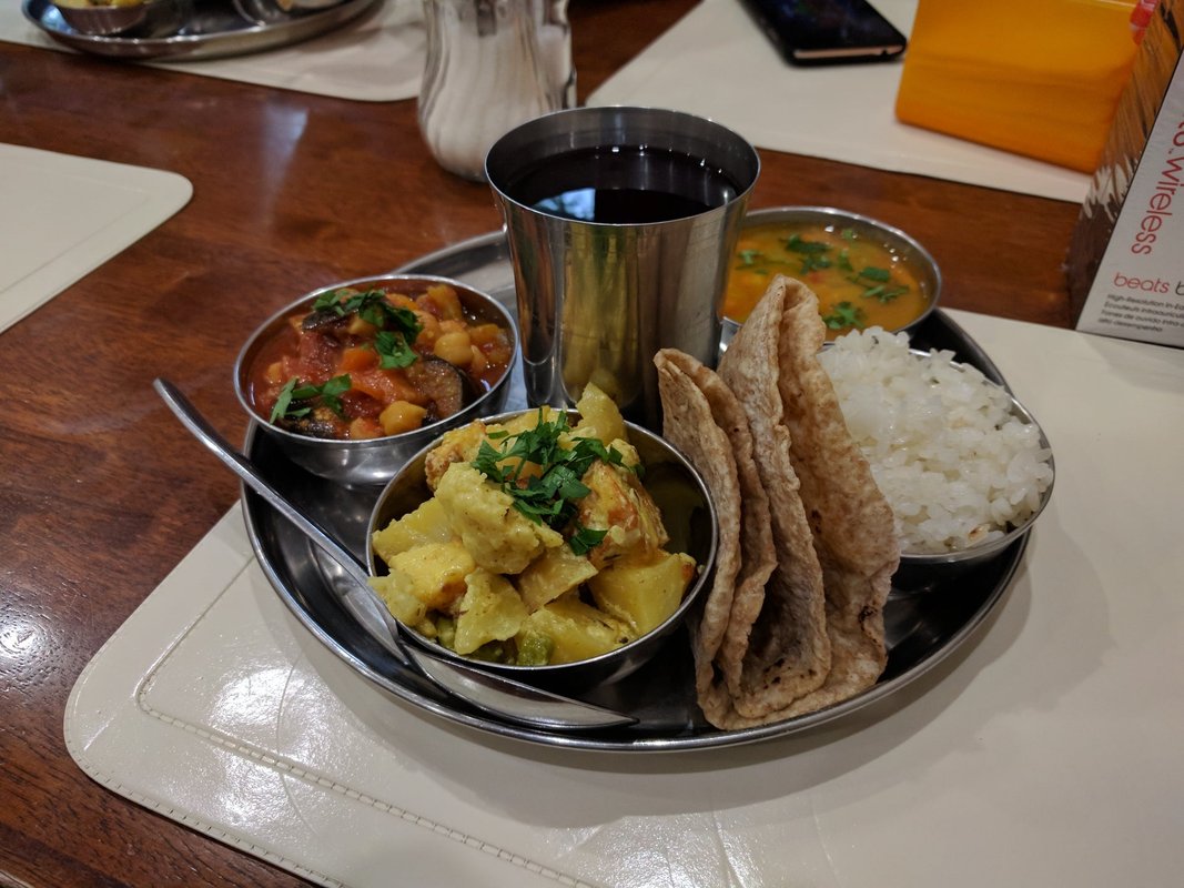 отличные баклажаны с паниром. хороший чай (масала подается без сахара). готовят долго. атмосфера непритязательная.