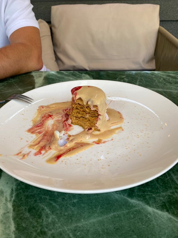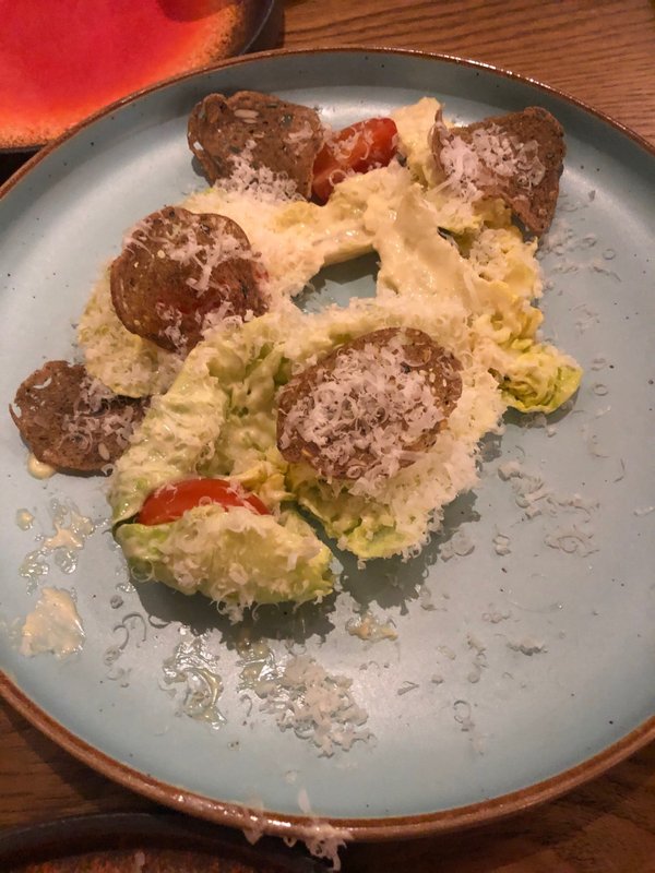Очень маленькие порции. В картошке грибами много масло и сама картошка просвечивает. Пасты ничего, можно наесться. На фото цезарь авторская подача «не переешь»