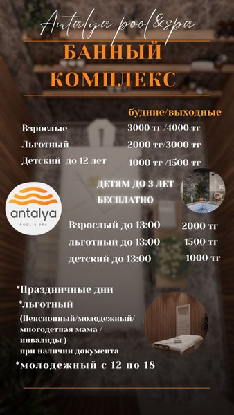 Отзывы о банном комплексе Antalya pool&spa (Анталя пул&спа) на улице Илияса Жансугурова