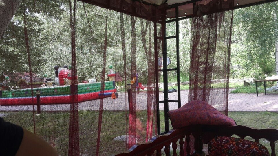 Очень большая территория, удобно для колясочных прогулок, есть детская площадка, свежо и прохладно. Не берите беседки в далеке придётся ждать официанта долго.