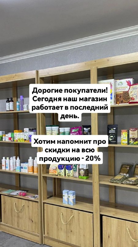 Дорогие покупатели! Сегодня — последний рабочий день нашего магазина. В знак благодарности за вашу поддержку действует скидка −20% на весь ассортимент. Спасибо, что были с нами! Будем рады видеть вас сегодня