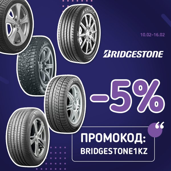 омпании в один из центральных районов города Токио. В 1953 году «Бриджстоун» стал крупнейшим производителем шин в Японии. В гонке за технологическим прогрессом компания приступила к выпуску радиальных шин. Помимо этого в 60-е годы компания Bridgestone стала одним из самых крупных производителей велосипедов в Японии и открыла завод по производству шин в Малайзии. В 1972 году для масштабного вывода продукции на европейский рынок было открыто представительство в Брюсселе. В 1976 году компания Bridgestone начала поставку шин для японских команд Формулы-1. В 1982 году Bridgestone представила свою первую зимнюю фрикционную автошину. В 1988 году компания Bridgestone полностью поглотила производителя шин Firestone Inc. и стала крупнейшим производителем шин в мире. С 1996 года специалисты Bridgestone ведут усиленную работу над спортивными покрышками для гонок Формулы-1. Болиды Формулы-1 на шинах Бриджстоун Potenza в первом же сезоне принесли компании четыре призовых места. В 1998 году Bridgestone выиграла свой первый мировой чемпионат благодаря Мика Хаккинену и его команде Mercedes/McLaren. Сегодня Bridgestone — это 39 шинных заводов по всему миру, второй в мире и крупнейший в Японии производитель шин. Ей принадлежит около 20% всего мирового рынка шин. Станьте одним из фанатов этого прекрасного бренда, как это сделали миллионы автолюбителей по всему миру — вот ваш шанс на скидку в 5% на все от Bridgestone по промокоду BRIDGESTONE1KZ до 16 февраля!