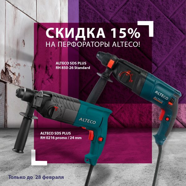 Вы еще не тот самый человек сосед? У вас есть шанс! Только до 28 февраля на сайте 1.kz дарим скидку в 15% на перфораторы ALTECO SDS PLUS RH 850—26 Standard и ALTECO SDS PLUS RH 0216 promo / 24 mm! Удобные, мощные и надежные перфораторы проделают отверстие в любой бетонной стене — а мысль, что они достались вам на 15% дешевле будет вас греть весь холодный сезон!