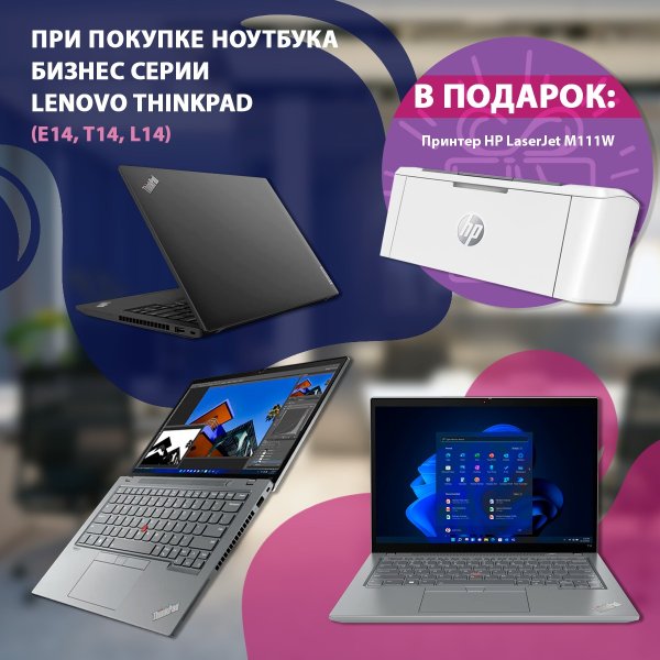 нале процессоры высшего уровня, удивительную графику и батареи, способные работать весь день, они обеспечат безупречную производительность в любых условиях. А теперь представьте себе мгновенную печать документов, безотказное соединение и печать с мобильных устройств – всё это возможно с принтером HP LaserJet M111W. Этот надежный и стильный принтер станет идеальным дополнением к вашему рабочему пространству, обеспечивая качественную печать на скорости, которая удовлетворит даже самых требовательных пользователей. Сделайте правильный выбор для вашего бизнеса – объедините мощь ноутбуков Lenovo Thinkpad с надежностью принтера HP LaserJet M111W. Это идеальное сочетание, которое позволит вам сосредоточиться на том, что действительно важно. Количество товара ограничено.