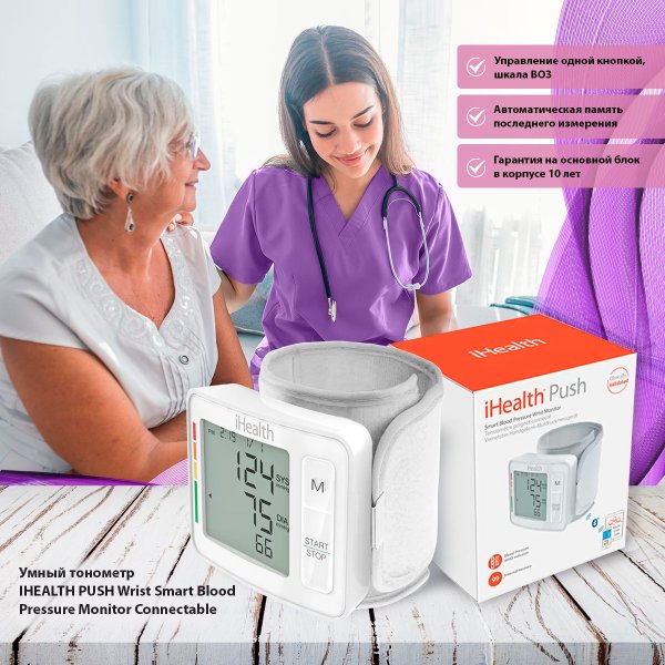 Тонометры становятся меньше! Наручный тонометр iHealth PUSH Wrist Smart Blood Pressure Monitor CONNECTABLE позволит вашей бабушке измерить давление и частоту пульса где угодно и когда угодно! Результаты сразу же видны на его большом экране или на смартфоне с помощью приложения iHealth MyVItals. Если под рукой смартфона нет, iHealth Track сохраняет до 99 измерений перед синхронизацией. Простого нажатия на устройство достаточно для синхронизации данных с приложением. Тонометр использует передовые алгоритмы, что обеспечивает точность измерений и… — Читать дальше