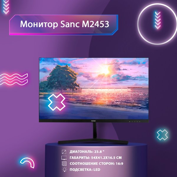 Откройте новое измерение яркости и четкости с монитором Sanc M2453! Сегодня мы познакомим вас с монитором Sanc M2453, с которым вы перенесётесь в захватывающий мир кристально чистого изображения и потрясающих цветов. С глубоким разрешением Full HD и диагональю 24 дюйма, монитор Sanc M2453 обеспечит великолепную чёткость и детализацию изображения. Теперь каждая деталь станет заметной. Насладитесь невероятным качеством цветопередачи благодаря широкому спектру цветовой гаммы. Монитор Sanc M2453 воспроизводит яркие и реалистичные оттенки, чтобы вы… — Читать дальше