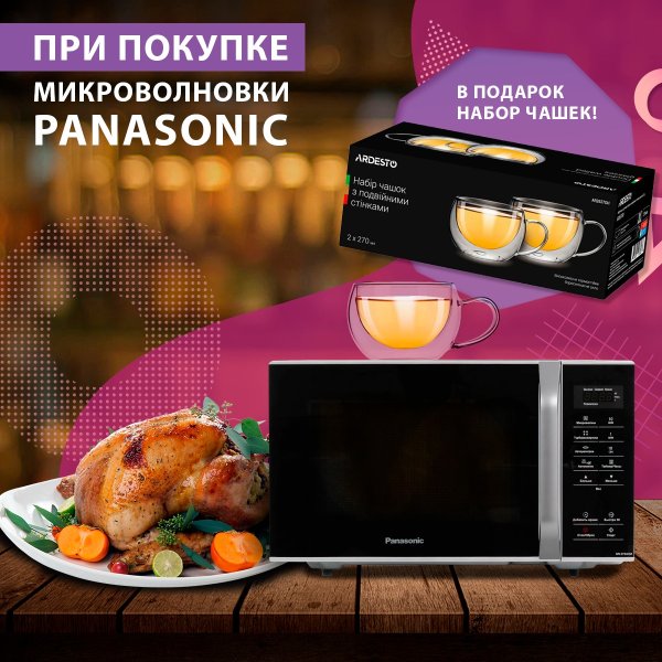 огофункциональность — гриль и программы для приготовления различных видов пищи, что делает их еще более удобными и полезными в использовании! И не забудьте про набор чашек Ardesto — до 28 февраля к каждой покупке микроволновки Panasonic на сайте!