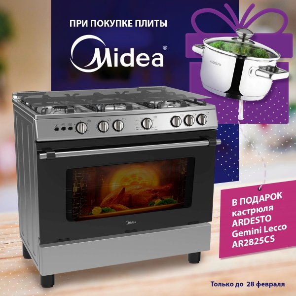 Как это, плита есть, а кастрюль нет? Мы исправим эту ситуацию! Только до 28 февраля дарим каждому, кто купит плиту MIDEA FSC-900BX — кастрюлю ARDESTO Gemini Lecco AR2825CS! Шикарная и стильная плита на большую семью с грилем и вертелом, электрическим поджигом и системой безопасности от утечки газа достойна шеф-повара! Гриль позволяет добиться на продуктах поджаристой корочки. Приготовленная с использованием гриля пища внутри остается нежной и сочной, но с аппетитной и румяной корочкой. А благодаря вертелу Вам не придется переворачивать блюдо дл… — Читать дальше