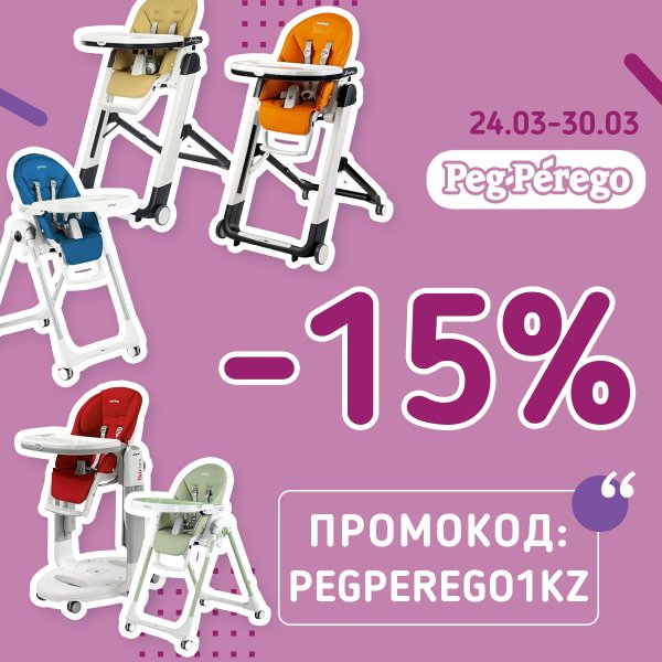 Модели стульчиков для кормления предназначены для детей от 0 до 36 месяцев, а многие из них оснащены съемными подносами, которые можно мыть в посудомоечной машине, а также ремнями безопасности, чтобы гарантировать безопасность ребенка во время еды. Используйте промокод PEGPEREGO1KZ при оформлении заказа в период с 24 по 30 марта и получите скидку в 15%.