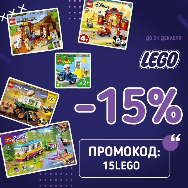 Lego расширилось до производства пластмассовых игрушек в 1947. Кубики стали пластмассовыми с идентичными штырьками, что дало возможность соединять их друг с другом. Так появились на свет первые конструкторы LEGO. С момента своего основания, Lego Group выпустила тысячи наборов со множеством тем, включая такие известные как Town, City, Star Wars, Ninjago, Friends. Побалуйте своих детишек самыми лучшими наборами LEGO — теперь и со скидкой в 15% по промокоду 15LEGO до Нового года!