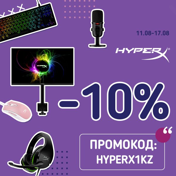 ли. 2012 год: HyperX анонсирует свои первые игровые наушники – HyperX Cloud. Это событие стало началом активного входа бренда на рынок игровых аксессуаров. 2014 год: HyperX представляет свои первые механические клавиатуры и игровые мыши, расширяя ассортимент продукции. 2016 год: HyperX продолжает расширять линейку игровых наушников и выпускает HyperX Cloud Revolver и другие модели. 2017 год: Компания выпускает HyperX Alloy FPS – компактную механическую клавиатуру, специально разработанную для шутеров от первого лица. 2019 год: HyperX расширяет свой ассортимент до беспроводных наушников и запускает HyperX Cloud Flight. 2020 год: Бренд представляет свои первые наушники с активным шумоподавлением – HyperX Cloud Flight S. 2021 год: HyperX объявляет о продаже бизнеса игровых периферийных устройств компании Kingston и становится независимым брендом, сосредотачиваясь исключительно на разработке и производстве игровых аксессуаров. Помимо указанных событий, HyperX продолжает выпускать новые модели и обновлять свои продукты с учетом последних тенденций в игровой индустрии. Мы дарим вам скидку в 10% по промокоду HyperX1KZ с 11 по 17 августа.