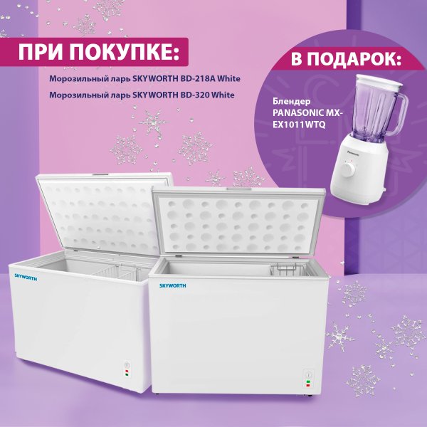 Морозим запасы на зиму! Только до 31 декабря объявляем финальную распродажу морозильных ларей SKYWORTH + двойной cashback в 10%! Лари Skyworth уже зарекомендовали себя как надежные морозильники для хранения замороженных товары — они супер-просты в обращении, у них большая вместимость и удобная компоновка! Приятная цена и двойной кэшбек до 31 декабря!