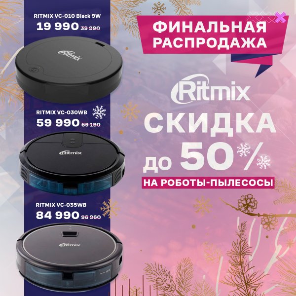 У нас финальная распродажа на роботы-пылесосы Ritmix! Супер-приятные цены на RITMIX VC-010 Black 9W RITMIX VC-030WB RITMIX VC-035WB Сухая и влажная уборка от 90 до 120 квадратных метров с тихими, умными и комфортными роботами-пылесосами Ritmix, которые шумят не громче, чем домашняя электробритва теперь по карману каждому! Цены — от 20 000 тенге! Такого еще не было! Чистый дом каждый день — за 20000!