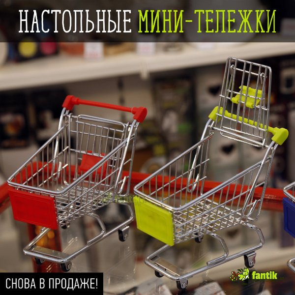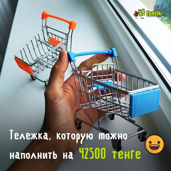 Ура Снова появились офисные мини-тележки Миниатюрная настольная «тележка из супермаркета» очень сильно напоминает настоящую, но не смотря на точную копию настоящей тележки, использовать её лучше для хранения различных мелочей, канцелярских принадлежностей, в качестве подставки для мобильного телефона или бумажных блоков. Забавная вещица поможет сохранить порядок, сделает обстановку более непринужденной, может послужить оригинальным дизайнерским решением при оформлении каминной или книжной полки. В наличии. Цена со скидкой — 2500 тенге