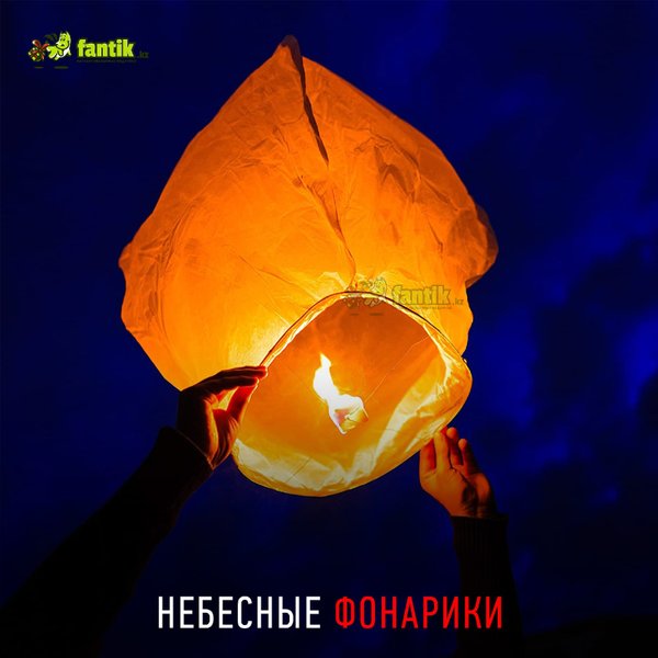 К нам пришла партия небесных фонариков трёх цветов (красный, голубой, зелёный) в форме сердца, а также простой формы Небесные фонарики светятся в темноте, после запуска они постепенно набирают высоту и удаляются. Бумажный конус или сердце взлетает в небо за счет горелки, установленной внутри и нагревающей воздух. Оболочку делают из термобумаги, топливный элемент находится в основании конструкции, на легком деревянном ободе. В наличии. Цена — 450 тенге