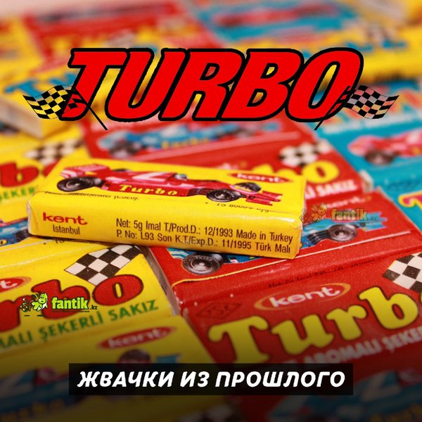 Жвачки T U R B O «Turbo» сегодня не просто жевательная резинка, а культурное явление, знаковый продукт 90-х годов. Одна подушечка «Turbo» способна перенести вас в мир детства, а автомобиль на вкладыше — подарить отличное настроение! В блоке 100 жвачек В наличии. Цена — 2600 тенге