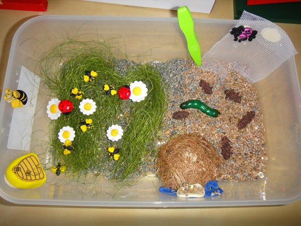 МОНТЕССОРИ ДОМА!!! (11.05.2017): Весенние сенсорные коробочки. Весной будет актуально использовать в коробочках яркие цвета: зеленый, желтый. Предлагайте натуральные материалы, а когда это будет возможно, приносите с улицы природные материалы: траву, полевые цветы, камни, веточки, все то, что было под снегом, и дети давно не видели. Используйте фигурки насекомых и цветов. Вы также можете добавлять воду в ваши сенсорные коробочки.