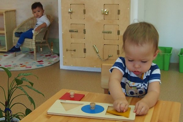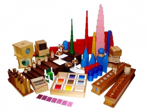 по разным характеристикам: размеру, весу, высоте, форме. Первоначально им приходится делать соотношение визуально, выделяя характерные особенности. 3. Зона упражнений с водой. Тренируются навыки пользования водой: переливание ее из разных емкостей и разными способами: ложками, с помощью губок, банками. Также допускается возможность доставать предметы из таза с водой. Преимущественно в этом процессе задействованы шарики и пуговки. 4. Зона для развития мелкой моторики. Тут есть различные материалы, для пальчиковой тренировки: шнуровки, бусины, вкладыши и т.д. С ними производятся простые, но полезные действия: завязывание-развязывание, наматывание-разматывание, закручивание-раскручивание, выжимание и пр. 5. Зона продуктивной ИЗО-деятельности. Рисование разными методами: пальчиками, кистями, мелками и пр. Здесь не стоит задача освоить технику рисования в привычном понимании, главное — художественно прожить образ. Ребенок сам выбирает материалы и способы передачи. 6. Зона речевого развития. Здесь у детей есть возможность расширить свой словарный запас, развить фонематический слух, они постепенно готовятся к овладеванию письмом, осваивая печатные и письменные буквы посредством подвижного алфавита. Звуки произносятся как стоя, так и в движении. 7. Зона космоса для активизации умственного развития и создания целостной картины мира с пособиями, направленными на постижение основ языка, математики, ботаники, анатомии, географии и других наук. 8. Зона для развития координации, тренировки вестибулярного аппарата, мышц и ловкости движений. Иными словами, увлекательные занятия физкультурой.