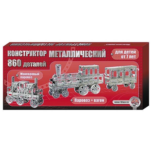 ких деталей 1)планка 10 отв.-18шт. 2)планка 5 отв.-4шт.3)планка 3 отв.-24шт 4)планка2отв.-4шт 5)скоба малая- 8шт. 6)скоба /.-6шт. 7)скоба //-12шт 8)уголок/-25шт 9)уголок///-2шт. 10)пластина 20х20—6шт. 11)панель большая-8шт. 12)панель- 4шт. 13)отвертка+гаечный ключ по 1шт. 14)шпилька Из этих деталей ребенок собирает как минимум 3 большие модели: паровоз, вагон и маневровый паровоз. Для каждой из них на коробке перечислены необходимые элементы. В комплекте пошаговая иллюстрированная инструкция по сборке. Приятная особенность готового транспорта: колеса крутятся, так как крепятся на оси. При этом они очень похожи на колеса настоящего поезда! Благодаря множеству отверстий на поверхности панелей детали свободно соединяются друг с другом в любых комбинациях. Этот дает просто для творчества и реализации собственных моделей. Чем еще дополнить железную дорогу? Рельсами, переездами со шлагбаумами, станциями Пусть ребенок фантазирует и конструирует полноценный мир! Почерпнуть новые идеи ребенок может из книги Б.П. Никитина «Интеллектуальные игры». С ее помощью он создает целое конструкторское бюро. Что развивает детский конструктор Он тренирует пространственное и логическое мышление ребенка, делает его более внимательным, сосредоточенным. В процессе сборки моделей маленький инженер совершенствует навык работы руками, учится обращаться с простыми инструментами. Большое количество деталей и возможность их комбинирования пробуждают воображение. Набор рекомендуется для уроков труда в начальной школе. Возведите железную дорогу для увлекательных игр из металлического конструктора! Приходите и выберите свою игру! Мы находимся по адресу: пр. Абая угол Байзакова, здание БЦ Байзак, офис 105, 1 этаж. Ссылка на сайте: Телефоны: