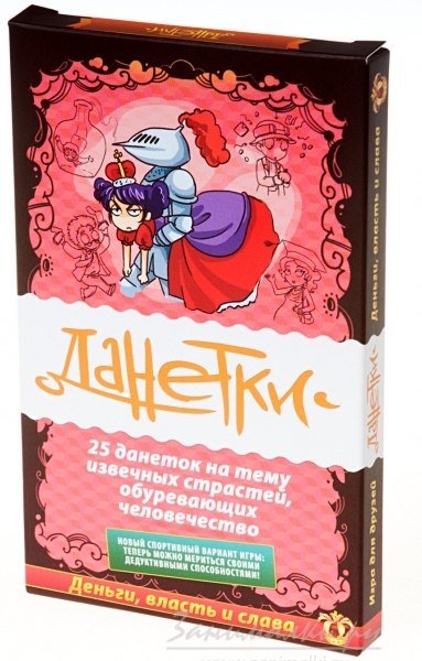 астью и деньгами — и, главное, что из этого получается. А что вообще такое данетка? Это словесная игра, в процессе которой игрок, знающий часть некоторой ситуации, задает ведущему, знающему ситуацию полностью, разнообразные вопросы, чтобы выяснить истину. Ответом может быть «Да», «Нет» или «Не знаю» — отсюда и название игры. А ситуацией — все, что угодно. Например, в этом наборе истории крутятся вокруг трех человеческих страстей — власти, славы и денег. А как помогают карточки? Каждая карточка — готовая игра. На одной стороне размещена часть истории, показываемая игроку. На другой — история полностью, чтобы ее мог прочитать ведущий. Кроме того, на обратной стороне указаны самые козырные вопросы: если игрок такие задает, то он получает бонусные очки. Зачем очки? Данетка может быть не только приятным и полезным времяпрепровождением для двоих путешественников или отдыхающих. Самые логичные и азартные игроки составляют целые турниры. В ходе таких соревнований нужно стараться разгадать историю за как можно меньшее количество вопросов. Победившему достается слава самого логичного игрока, власть над загадками и, если игра ведется по-взрослому — порой даже деньги. А что можно выиграть, кроме денег? Развить логическое мышление и алгоритмизацию — ведь в процессе игроки учатся задавать вопросы, сразу отсекающие огромное количество решений; Получить кучу приятных впечатлений — в поезде, на пляже, в кафе данетка затягивает участников, доставляя кучу удовольствия; Лучше узнать друг друга — для внимательного наблюдателя вопросы, задаваемые игроком, а также варианты разгадки — это целая книга признаний о собственных взглядах на жизнь и людей вокруг, так что пользуйтесь случаем, изучайте друг друга! Спортивная игра в Данетки В этом варианте игры важно не просто отгадать историю, но задавать наиболее продуманные вопросы. Чем быстрее приходит отгадка и чем точнее ключевые вопросы, тем лучше действуют игроки. Задача ведущего — не только отвечать на вопросы, но и фиксировать количество очков, которые зарабатывают или теряют игроки в процессе отгадывания. Игроки задают вопросы по очереди (или вне очереди, если другие молчат). Любой вопрос — минус одно очко. Вопросы, которые дают очки, приведены на карточке. Также ведущий поощряет другие вопросы, ответы на которые приближают игроков к разгадке. Наиболее интересны в этом плане системные вопросы, которые сразу позволят разгадывающим отмести целую группу версий, сузить русло потенциальных вариантов и так далее. Ещё больше очков начисляются игроку, если он правильно и достаточно полно выдвинул версию происходящего в разгадываемой истории. Неправильные версии засчитываются как обычный вопрос: — 1 очко. Приходите и выберите свою игру! Мы находимся по адресу: пр. Абая угол Байзакова, здание БЦ Байзак, офис 105, 1 этаж. Ссылка на сайте: Телефоны: