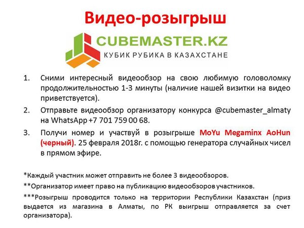 как и обещали розыгрыш для участников группы Ватсап. cubemaster_almaty