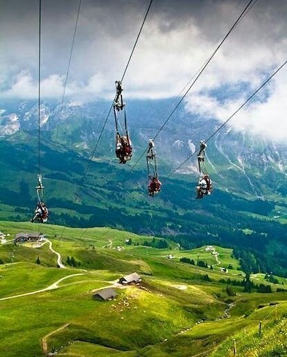 Где-то в Альпах есть такой очень экстремальный аттракцион — зип-лайн или троллей. А вы бы решились прокатиться? . .