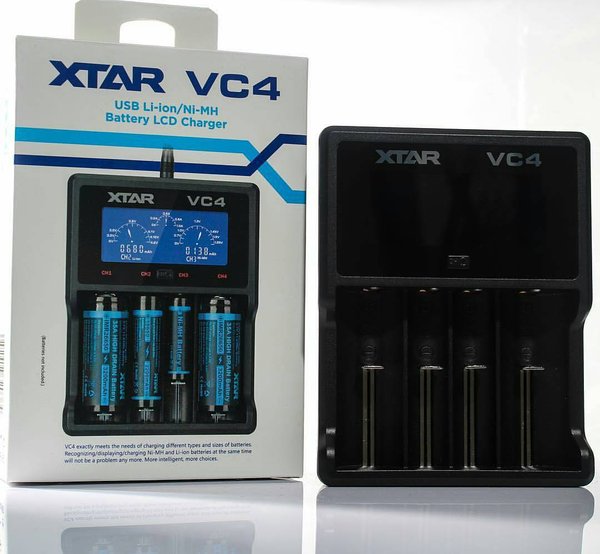 Одно из лучших зарядных устройств для литий-ионных и NiMH аккумуляторов от Xtar - VC4. 4 отсека и питание от любого адаптера USB.