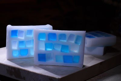 Когда наши голубые кусочки застынут, осторожно вынимаем их из формочек.