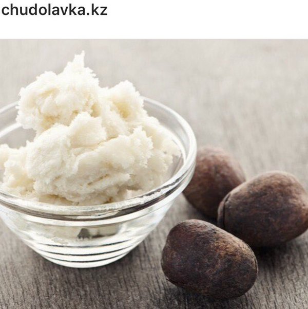 тиоксидальнок действие. • Устронение сухой кожи — к 3 чайным ложкам масла Ши добавить 4 чайные ложки масла миндаля. Смесь тщательно мешается, постепенно охлаждается, во время этого процесса в неё закапывают 3 капельки эфирного масла ромашки и 2 капли эфирного масла лаванды. После крем заливают в емкость, закрывают крышкой и отправляют в холодильник. Срок годности данного средства превышает 3 недели. Применение — не чаще 2-х раз в день. Для волос: Масло Ши показало отличные результаты в восстановлении поврежденных волос. Масло нужно наносить на влажные волосы, после мытья, отступая от корней несколько сантиметров. Время воздействия — 40 минут. Смывать горячей водой, без применения шампуня. Масло Ши не делает волосы жирными и не утяжеляет их. После первой недели использования, волосы оживают, становятся мягкими и блестящими Это Чудо масло вы сможете найти у нас на сайте — chudolavka.kz Цена — 650 тг / 50 гр