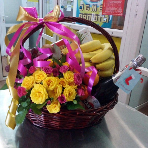 Наша счастливая получательница букет из шикарных роз и любимая фруктовая корзина ️
