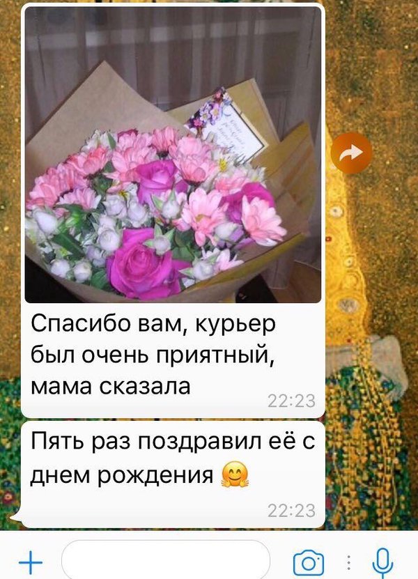 Спасибо нашим клиентам за обратную связь А также наши операторы всегда могут вам отправить такой отчёт о доставке ️ Фото получателя с букетом