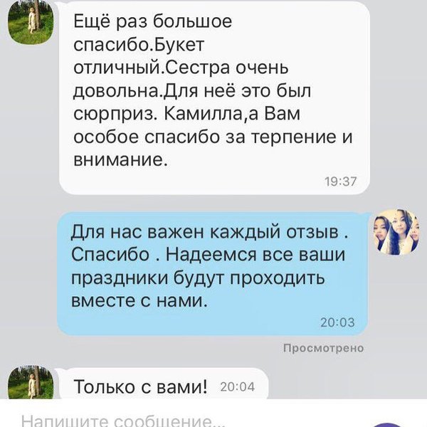 Мы работаем ради Ваших отзывов! Наши менеджеры, флористы курьеры! Спасибо за то, что Вы с нами ️
