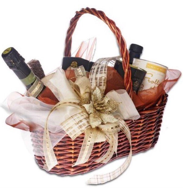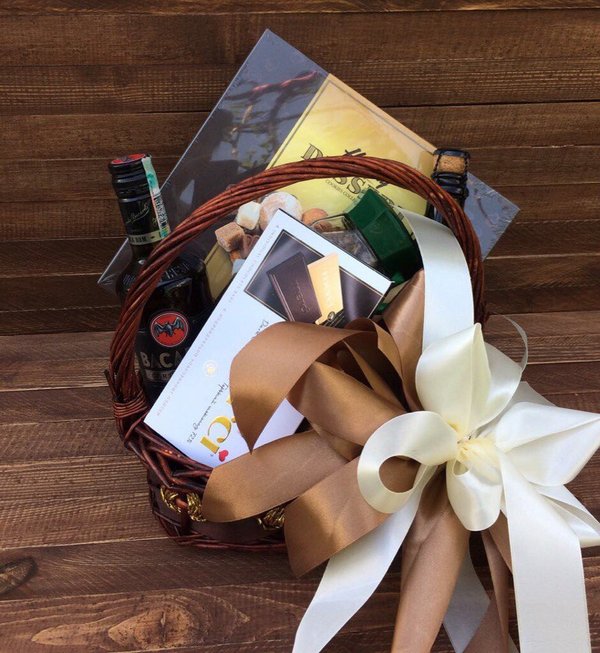 Шикарная подарочная корзина терпкое вино, вкусный шоколад и другие сюрпризы