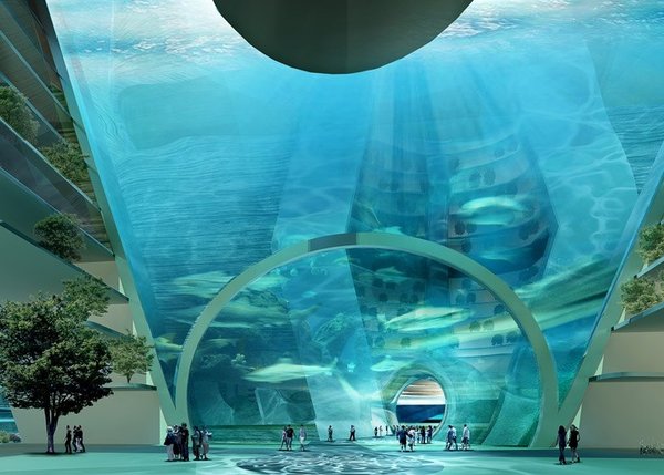 Проект разрабатывается для возможной реализации вблизи моста, соединяющего Гонконг, Макао и Чжухай. Город представляет собой еденное жилое пространство с многоквартирными домами (включая небоскребы), частными виллами, административными зданиями, офисами, гостиницами, магазинами, ресторанами и т.д. азвание проекта выбрано банальное — Floating City (Плавучий город). Гигантские полупогруженные в воду, как айсберги, железобетонные конструкции будут организованы в городское, пусть и подводное, пространство. «Здания» Floating City будут соединены пешеходными тротуарами и автомобильными дорогами — и все это на глубине в несколько десятков метров под водой! Средствами передвижения в городе также запланированы яхты и подводные лодки. В города даже два зеленых пояса — парковые зоны. Одни парки расположены над поверхностью воды, остальные — под водой. Надводное зеленое пространство может использоваться для спорта и отдыха на свежем воздухе. Подводные парки будут в большей степени нужны для поддержания экологии и микроклимата в замкнутых помещениях. Вентиляция, кстати, в городе, будет централизованной — воздух в подводные этажи планируется закачивать через гигантскую трубу, расположенную в середине комплекса. Иточник: rbc.ru