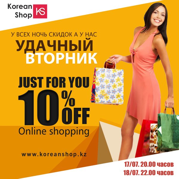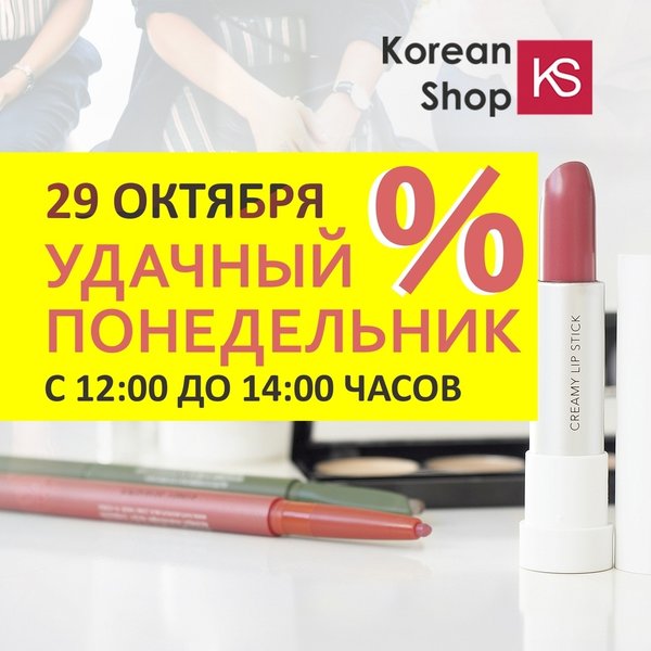 Дорогие покупатели и подписчики 29 октября уже завтра с 12:00 часов до 14:00 часов мы запускаем акцию «УДАЧНЫЙ ПОНЕДЕЛЬНИК» СКИДКИ НА ВСЕ ТОВАРЫ В ТЕЧЕНИИ ⏳2х часов в интернет-магазине koreanshop.kz Успей завтра сделать свой удачный заказ не упустите шанс побаловать себя — Акция будет действовать всего 2 часа. За это время нужно оформить заказ на сайте интернет магазина koreanshop.kz.
